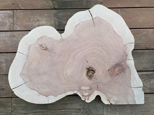 For Devon + Mario, a hand-lettered quote surrounded in botanicals to celebrate their love and the home they’re creating together. Oregon coastal redwood slab painted with acrylic.