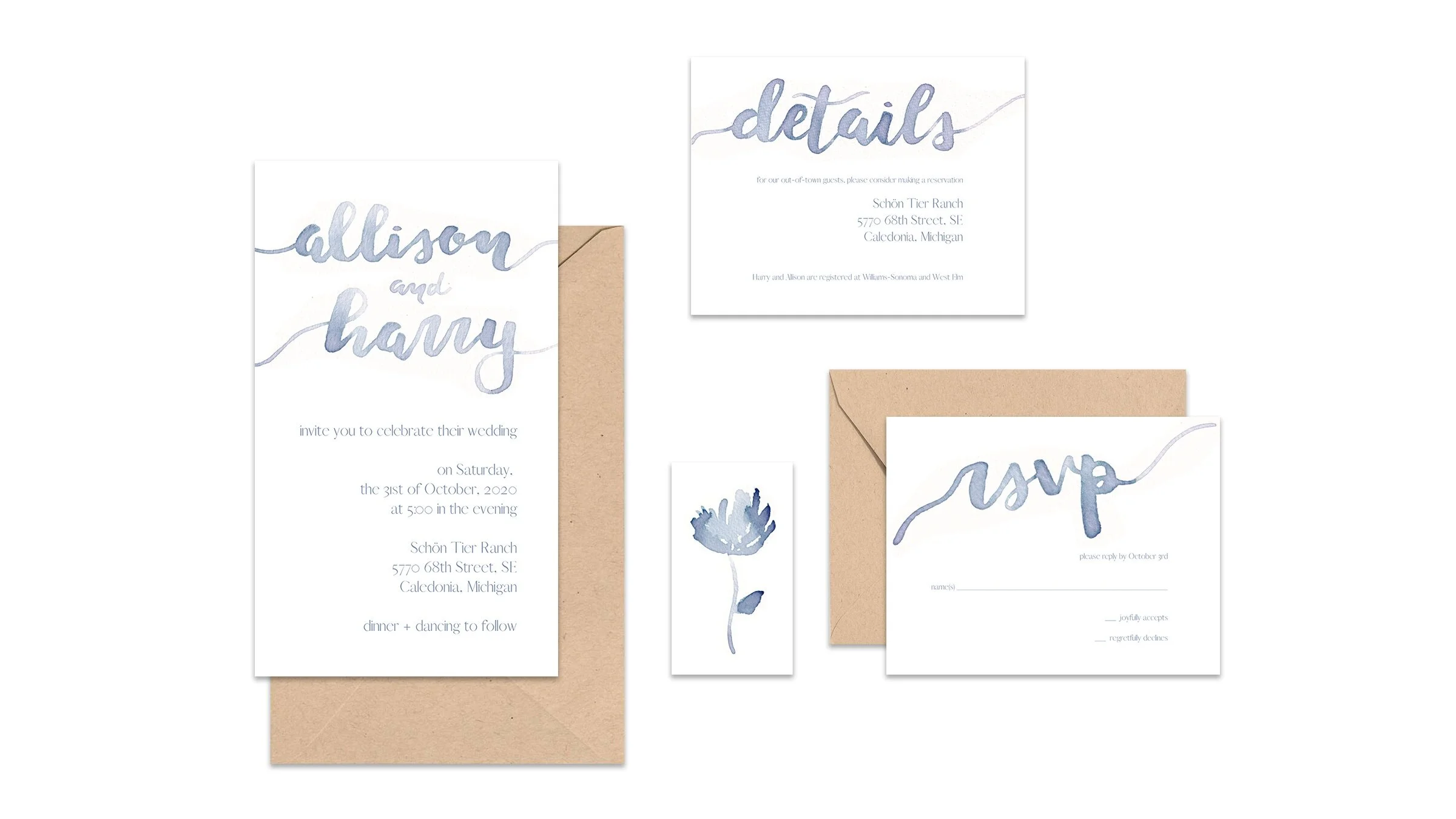 H + A minimalist watercolor wedding stationery suite.