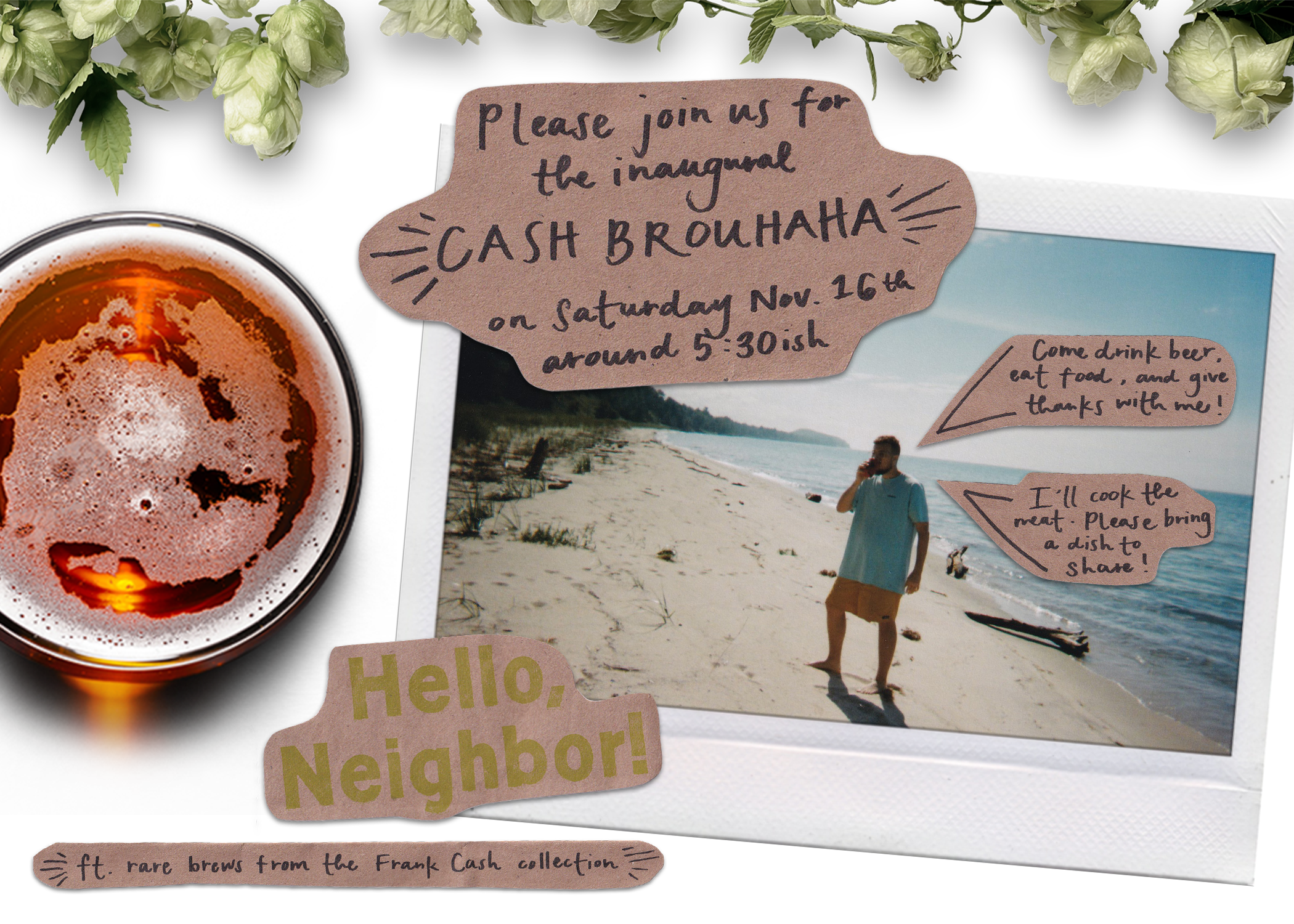 Brouhaha collage invitation.